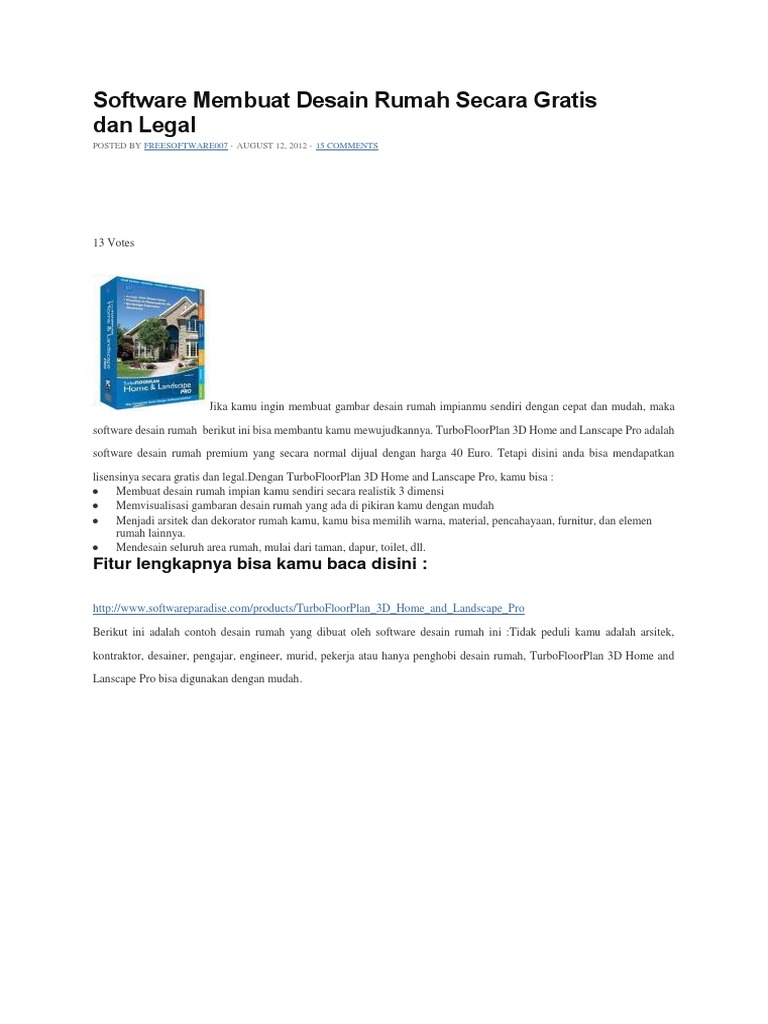 Ada banyak software desain rumah ringan, offline dan. Aplikasi web untuk desain rumah online yang satu ini pastinya gratis namun harus kalian catat bahwa homestyler merupakan sebuah aplikasi yang bisa di katakan penggunaannya pun cukup sulit, ya. Kedua, online home designing program, yang antara lain adalah autodesk homestyler, roomle, dan floor planner online. Room planner merupakan aplikasi desain rumah yang sangat realistis, aplikasi ini juga telah bekerja sama dengan perusahaan penyedia barang furniture. Awalnya software ini bernama hgtv ultimate design yang sudah lumayan cukup populer sebagai. Software gratis dengan kualitas mumpuni software apa yang tepat untuk membuat desain rumah terlihat seperti foto kamera? Ada banyak aplikasi desain rumah dan interior yang tersedia saat ini. Software atau aplikasi desain rumah gratis biasanya lebih simpel dan memiliki fitur yang sederhana, sehingga cukup mudah untuk digunakan oleh para pemula, yang notabenenya bukan seorang arsitek. Ada banyak sekali software desain rumah pc yang bisa kita download secara gratis. Beberapa aplikasi itu bisa anda unduh secara gratis. Berikut ini 10 link aplikasi desain rumah gratis yang bisa anda gunakan untuk merenovasi rumah dengan fitur yang lengkap dan mudah. Dengan adanya aplikasi tersebut anda yang awam bisa mulai mendesain rumah impian anda sendiri. Roomstyler 3d home planner merupakan salah satu situs yang bisa dipakai untuk membuat desain sebuah rumah secara gratis dan mudah.
